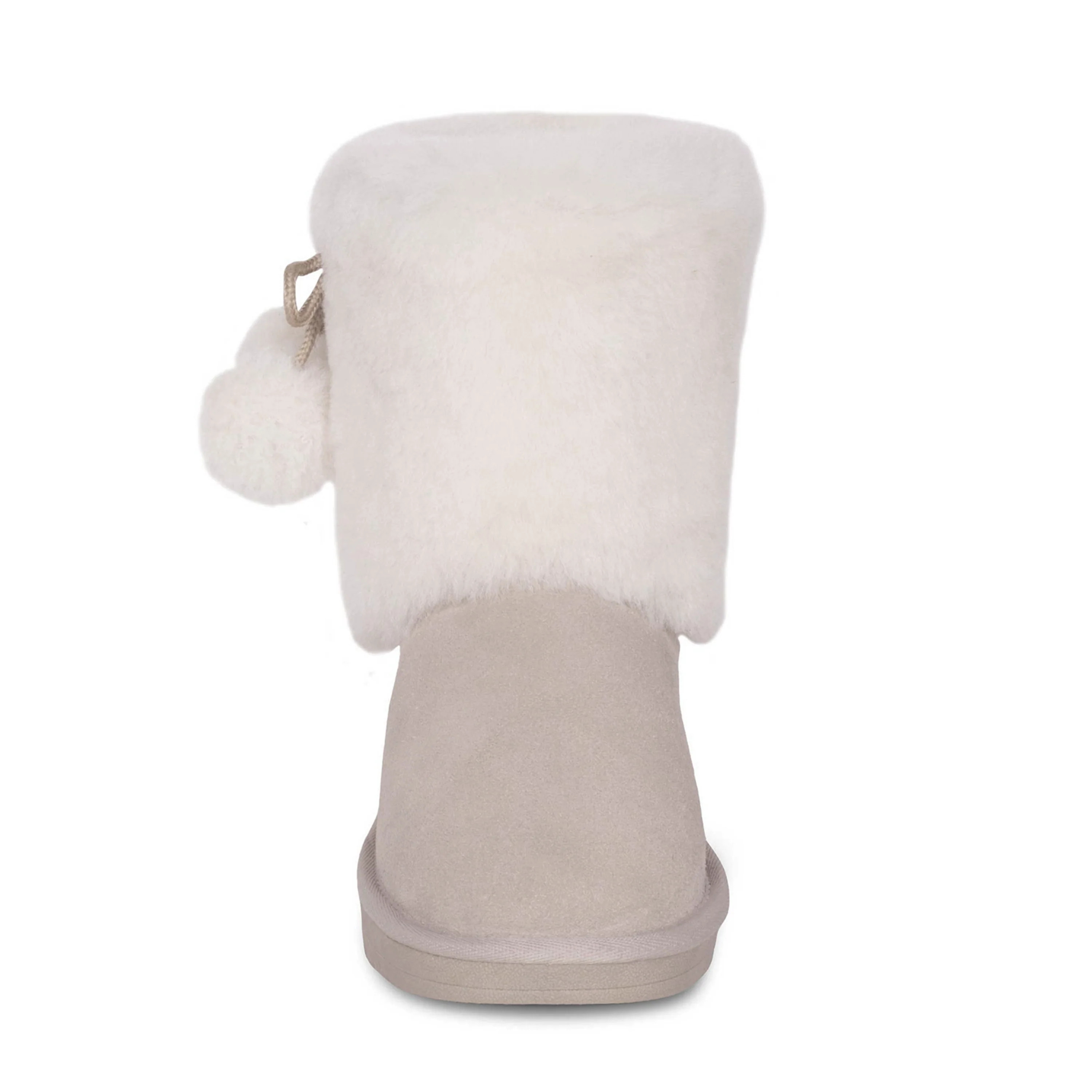 Snuggle your feet and ankles with a fuzzy warm sheepskin cuffed boot – the Pom Pom.